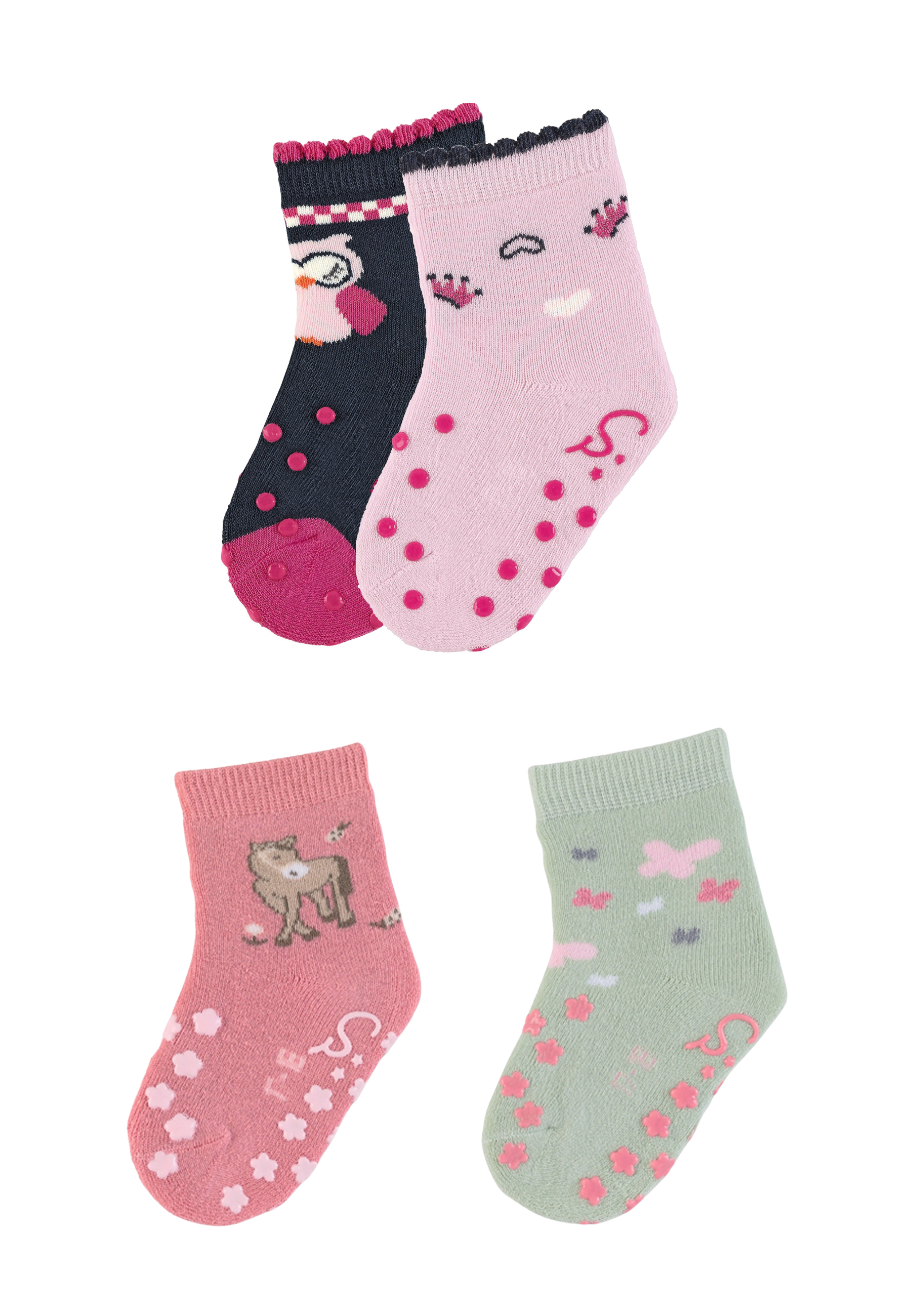 Roomamise sokke on alati trendika disainiga ja mugavad. Roomamise sokid pole mitte ainult roomamiseks ideaalsed, vaid julgustavad ka Sinu väikest kallist esimesi samme tegema. Tänu praktilistele jalalaba ja talla ABS-nupukestele on tagatud kindel tugi ja hea haardumine. Meeldiv materjal pehme plüüsiga. Sokkide kvaliteetne materjal-85% puuvillaga pakub mugavat istuvust. Elastne värvel tagab hea püsivuse ja hoiab ära libisemise ilma soonimiseta.